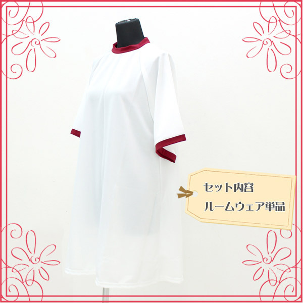 リラックスタイムも可愛くコスプレ♪一枚で着られるワンピース型の体操服コスチューム「体操着ルームウェア エンジ M」。すっぽりかぶるだけのワンピースタイプで楽ちん!ゆったりしているので着心地も抜群なおうちで着るコスプレ衣装です。※水洗い可、アイロンは中温で当て布使用、ドライクリーニング可、色落ちの可能性があります。