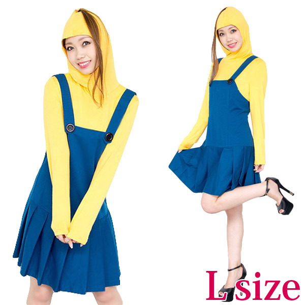 黄色と青のカラーリングが特徴的!某人気キャラをイメージした長袖仕様の可愛いデニム風一体型ワンピース(背面ファスナー式)。スカートは立体感のあるプリーツタイプ♪テーマパークやハロウィンで、お友達とお揃いで着れば楽しさ倍増!露出控えめのハロウィン仮装をお求めの方にも◎色落ちの可能性があるため、商品単体を手洗いするようお願いいたします。塩素系漂白剤での漂白不可※塩素系漂白剤による漂白不可、洗濯の際はリボンなどの付属品を外し個々単独での手洗いをお願いします、色落ちの可能性があります。※こちらの商品は在庫の状況によりお届けまでに4日〜7日程度かかる場合がございます。