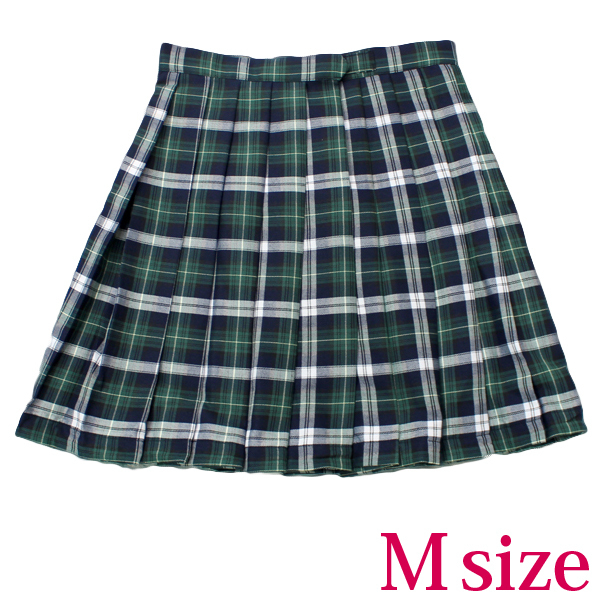 > ポケット付きのチェック柄プリーツスカート単品 緑×白 Mサイズ