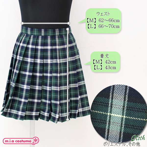 制服コーデを楽しみたい時に◎42cmの程よい丈感で使い勝手抜群なチェック柄プリーツスカート単品。横ファスナーを上げて、ウエスト部分のアジャスター付き留め具を引っ掛けるだけで簡単装着!自分好みの制服アレンジで気分を上げよう♪ポケット付き、落ち着きのある緑×白カラー。※色落ちの可能性があるので、水洗いや塩素系漂白での漂白はお控え下さい。※水洗い不可、塩素系漂白剤による漂白不可、色落ちの可能性があります。※こちらの商品は在庫の状況によりお届けまでに4日〜7日程度かかる場合がございます。