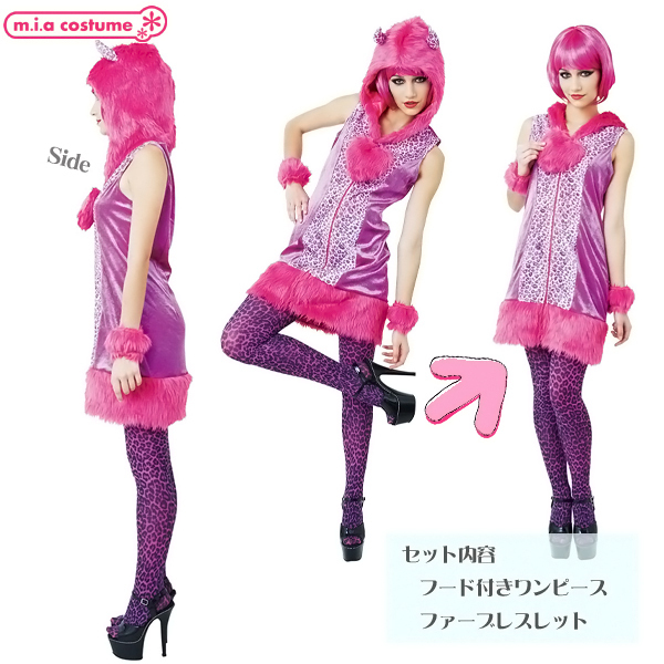 人とかぶらない個性的なハロウィン仮装をお探しの方に!フューシャピンクのビビッドなカラーが注目度抜群な、可愛いヒョウ柄の悪魔コスプレ。獣感のあるもこもこファーのフード付ワンピースとファーブレスレットで、全身をド派手にコーディネート!近未来から来たようなデザインが可愛いデビル仮装です。※水洗い不可、塩素系漂白剤、アイロン、ドライクリーニング不可、色落ちの可能性があります。※こちらの商品は在庫の状況によりお届けまでに4日〜7日程度かかる場合がございます。