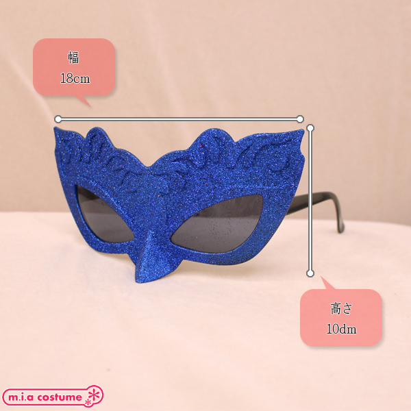 ラメがキラキラと光ってとっても華やか!仮面舞踏会や誕生日パーティ、ハロウィンイベントなどに最適な、手軽に装着できるサングラス仕様の仮面マスク(青)。紐を後ろで結ぶタイプとは違いズレ落ちにくく、脱着簡単で安定して着けられます♪※色落ちする場合がございます。※色落ちの可能性があります。※こちらの商品は在庫の状況によりお届けまでに4日〜7日程度かかる場合がございます。