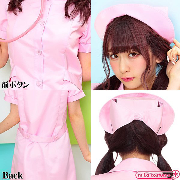 プチプラ価格でハイクオリティなコスプレの人気シリーズ「トキメキグラフィティ」から桃色ナースグラフィティが新登場!ベーシックなデザインながらも着心地や着用時のシルエットなど随所にこだわりが詰まったワンランク上のナースコスプレです♪ピンクカラーがキュートなナースコスチューム。丸い襟とパフスリーブがポイントで、ナースキャップは程良い位置にかぶってヘアピンで留めてくださいね♪※水洗い不可、塩素系漂白剤による漂白不可、アイロンは中温で当て布使用、ドライクリーニング可