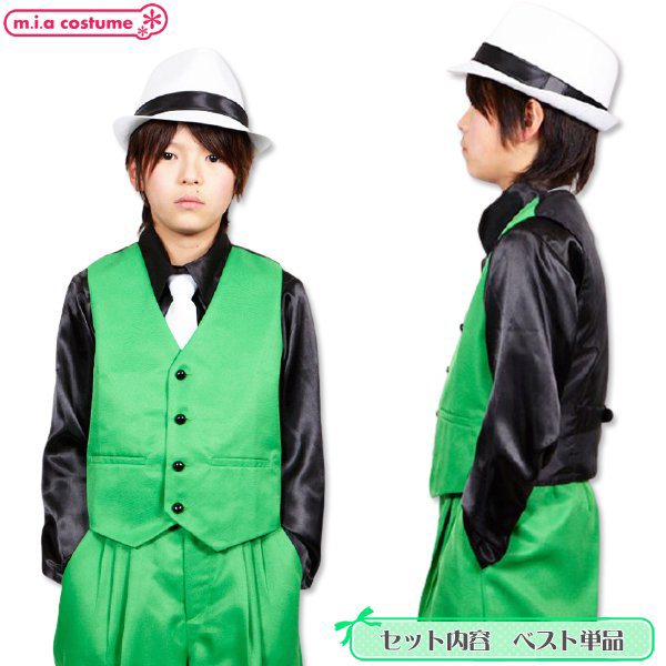 オシャレな着こなしが楽しめるグリーンカラーのベストです♪ステージ衣装の定番でサテンシャツ等との相性も抜群!カラーベストのみでもカッコイイですし、お手持ちの衣装と組み合わせて、あなただけの衣装を考えるのも楽しいですね♪カラーは多色展開。両サイドにはポケット付きです。こちらは150サイズです。※水洗い不可、塩素系漂白剤による漂白不可、アイロン不可、ドライクリーニング可