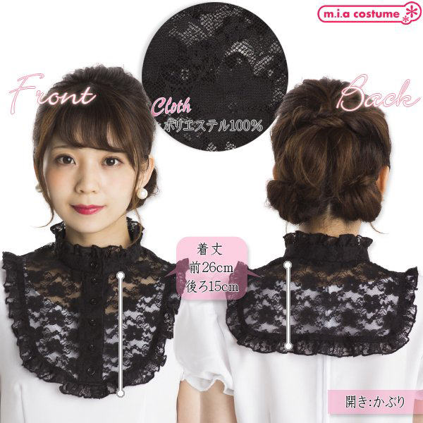 目にとまる静かな存在感のあるセレクトコスのレース付け襟(ブラック)です。セレクトしてオリジナルのコーディネートが楽んじゃおう♪総レース素材がエレガントな雰囲気を演出してくれる付け襟です。大人な雰囲気のスタイリングにぴったり!セレクトシリーズのワンピースに合わせるのはもちろん、普段着に合わせるのもオススメです♪