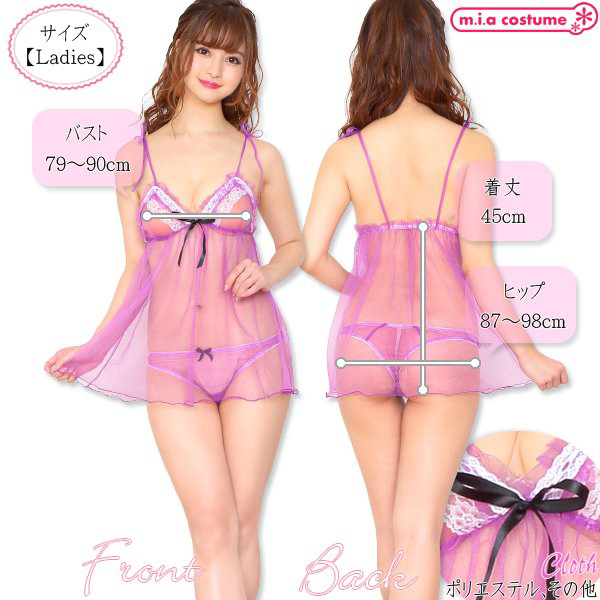 Mサイズ B79〜90cm・H87〜98cm・着丈45cm セット内容:ベビードール、ショーツ 素材:ポリエステル、その他