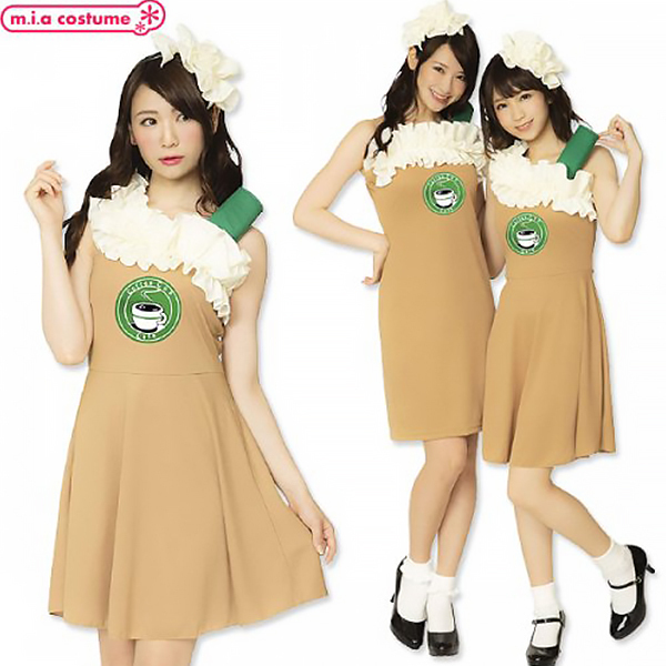 レディライクな着こなしに最適!フォームミルクをイメージした胸元のフリルがポイントのワンピースです。ハロウィンやクリスマス仮装、変装用のステージ衣装や舞台衣装として注目されること間違いなし!コーヒーカラーのワンピースはストレッチ素材で着やすく付属のシールを胸元に付ければキュートなカフェスタッフに!ふわっと裾の広がったスカートで女性らしい印象を出しちゃおう♪※洗濯機不可、塩素系漂白剤による漂白不可、アイロンは中温で当て布使用、ドライクリーニング不可、摩擦や水濡れにより色移りする恐れがあります。