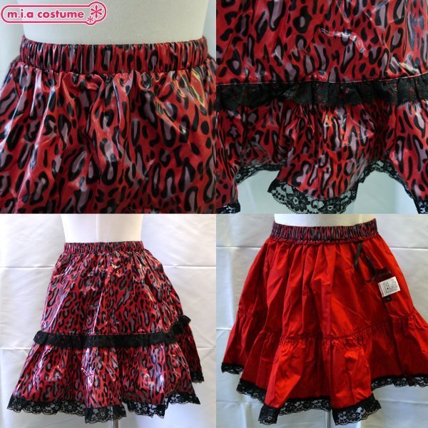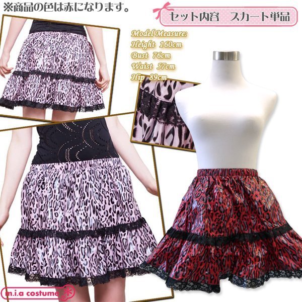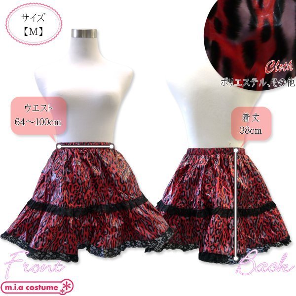 > コーティングオーバースカート 豹柄 レッド Mサイズ