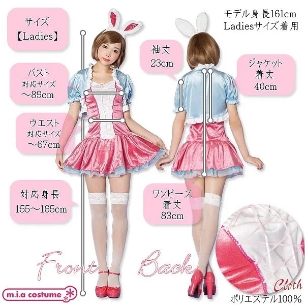 トキメキハイクオリティーシリーズ♪こちらはイースターラビットをイメージしたコスチュームですvパステルカラーのコンビネーションがとっても可愛い!ストレッチベロアを使用しているので、伸縮性があり、着心地も良いです。フロント部分はレースアップになっているので、若干のサイズ調整も可能です。紐を違う色に変えたり、ポップなカラーの小物やウィッグでコーディネートしても楽しいですね!※水洗い不可、塩素系漂白剤による漂白不可、アイロン不可、ドライクリーニング不可、色落ちの可能性がありますのでご注意ください。