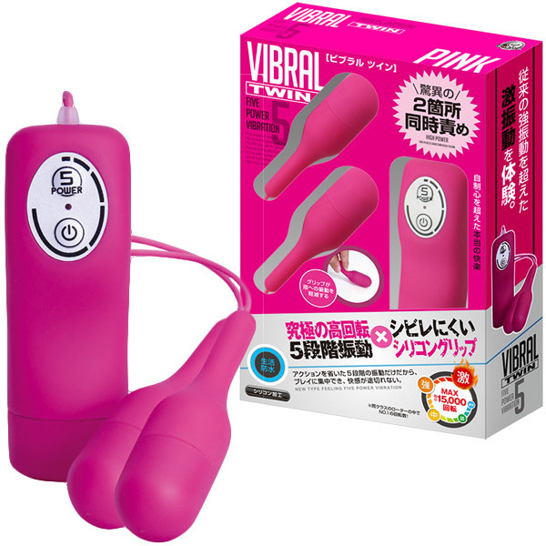 MAX15000回転!驚異の高速回転が敏感な箇所を容赦なく責める、究極のダブルローター「ビブラル ツイン ピンク」(生活防水仕様)です。ボタンひとつで選べる、ハイパワーな5種類の振動を搭載!また、ローター部分は強力振動を与えても痺れにくいシリコングリップ付きなので安心して使用できます。シンプルな見た目からは想像つかないほどの刺激&快感を与えるアイテムです。単四電池×2本使用。