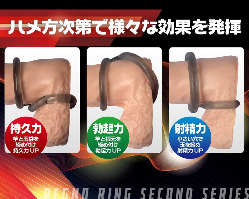 異なるサイズのダブルリングがハードに締め付けるシリコン製コックリング。●レグノコックリングシリーズ●ブラックスモークシリコン製●大小2サイズのリングが一つに●内径:大35mm・小16mm●サオとタマをハードに締め付け。あらゆるサイズに対応する優れた伸縮素材で、大小リングはサオとタマどちらでも装着可能!ハメ方次第で持久力や勃起力、射精力までサポートしてくれる万能ペニスリングです。