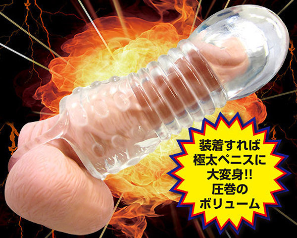 超巨大な亀頭に彼女もびっくり!逞しくさらに強くペニスを強化する「超極厚ギガントサック」です。中が透けて見えるクリアカラーで超が付くほどの極厚っぷりが自慢のギガントサック!中折れ防止・肉厚素材を採用していて敏感な男性器を全て覆ってくれるため、超ロングプレイが可能となりました♪5連の凸凹リングにイボイボ付きの刺激ボディ!全体を覆うオールカバータイプで分厚い仕様なため、大幅なサイズアップが期待でき外れる心配もありません♪サッと装着するだけで勃起力、サイズアップ、射精感を解決してくれる超極厚ギガントサック!お互いが満足したSEXができるよう、是非推奨したいサックです。