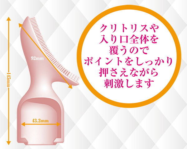 ホールド感が違う!包み込むようにフィットする中型電マアタッチメント。●中型クラスのマッサージャー対応●ヘッドをすっぽり覆う立体的形状●プニプニ質感でホールド力も抜群●ズレにくくプレイを快適サポート●長さ92mmのびっしり楕円形ブラシ●湾曲ボディが女性器丸ごと刺激。外イキ派ガールはもちろん、男性から女性へのクリトリス責めにも有効!ひしめくように隙間なく配置されたブラシ突起が、女性器に覆いかぶさるように包み込んで刺激する電マカバー。広範囲を刺激できるので、カーヴィボディを生かした全身マッサージにもおすすめです。