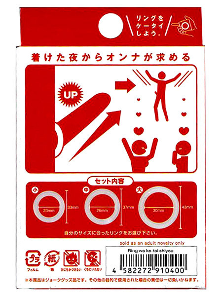 大・中・小の3個入り!シリコン素材のソフトリングセット「リングをケータイしよう」。●純正シリコン素材のリング3個●小サイズ:外径33mm・内径23mm●中サイズ:外径37mm・内径26mm●大サイズ:外径43mm・内径30mm。勃起力UPや早漏防止に!サイズやお好みに応じて3サイズを使い分けられる純正シリコン素材のソフトリング3サイズセット。カリ首や根元などお好きな部位に装着することで、様々な刺激を楽しめる男性用補助グッズです。