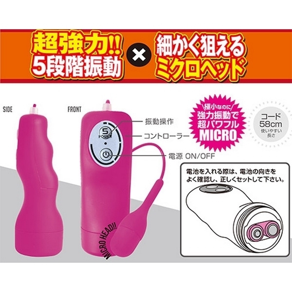 人気シリーズに史上最小サイズが登場!精密振動で細かく狙えるミクロヘッドのパワフルローター「ビブラル ミクロ」。●使い勝手の良さが人気のビブラル●お肌に優しいソフトシリコン加工●手の痺れを軽減するグリップ形状●長さ2.8×1.5cmの極小ヘッド●繊細な敏感部分をピンポイント刺激●握りやすい凹凸型コントローラー●超強力な五段階の振動機能を搭載●毎分15000回転もの「激」モード●コード長58cmで一人使い用にも◎●メンテナンスが簡単な生活防水。極小サイズでもパワフルな激振動!ミクロヘッドタイプのビブラルローター。当て・挿れともに便利な手持ち形状で前にも後ろにも大活躍です。