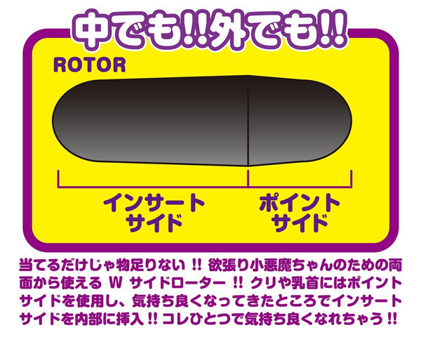 クリでも中でもOK!当てるだけじゃ物足りない欲張りさんにおすすめのブラックカラーローターが登場しました。両側から使えるWサイドローターでクリや乳首に当てたり、内部に挿入すれば振動を更に感じることが出来ます。コントローラーはスライドスイッチタイプでバイブの強弱も調節可能なので、初心者から上級者まで幅広く楽しめます。単三電池×2本付属。