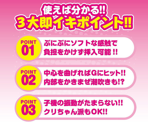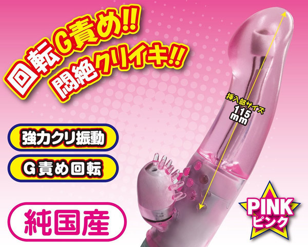 回転G責め&悶絶クリイキ!ぷにぷにソフトな感触のバイブレーター「オルガラッシュGソフト ピンク」。丸みのあるボディは純国産のソフト素材で負担を掛けずに挿入可能。挿入部のサイズは約11.5cm、中心を曲げればGにヒット!内部をかき乱す回転で潮吹き体験も可能!さらに、クリトリス派にも嬉しい突起付きの強力振動クリバイブも装備しています。