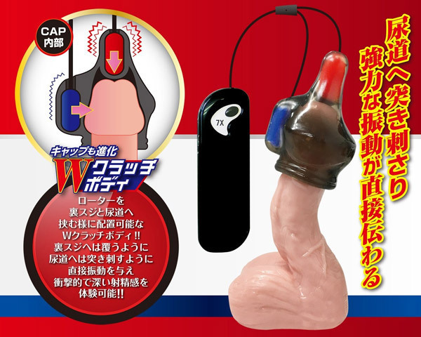 かつてない衝撃!強さの異なるダブルローターを搭載した亀頭オナグッズ「ブラックロック Wインパクト」。異なる振動を尿道と裏スジの2ヶ所同時に当てる事で、亀頭への刺激に立体感が加わり深みのある快感に!ローターの振動パターンは連動して変化する7段階振動を搭載。亀頭キャップ自体もローターを裏スジと尿道へ挟むように配置できるWクラッチボディへと進化!裏スジへは覆うように、尿道へは突き刺すように直接振動を与えます。ハンズフリーで楽しめる大人気『ブラックロック』シリーズの亀頭責めグッズ!各ローターの装着位置を変えることで違った刺激を楽しめます。