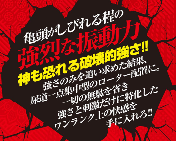 亀頭オナニーは神次元へ突入!常識を超えたけた外れの破壊力。最高クラスのローターを兼ね備えた『ブラックロック神威(かむい)』爆誕!シリーズ初の6ボルトローターを搭載したことによりブラックロックの名に恥じない質の良い濃厚な射精感を堪能可能。キャップは尿道に突き刺さるような形状になっているので、脳天から強烈な快感が突き抜けていくような深い刺激を楽しめる。今までとは一味違うブラックロック外伝でワンランク上の振動を試してみないか?