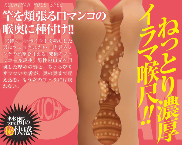 ケツマンシリーズスピンオフ!!男の本気フェラ!ねっとり濃厚イラマ喉尺で120%ガチイキ!「気持ちいいポイントを熟知した男にフェラされたい!!」と思うノンケの願望を叶える究極のフェラホール。男性の口元を再現した厚めの唇とちょっぴりザラついた舌が奥の奥まで咥え込む。もう女のフェラには戻れない。竿を頬張る口マンコの喉奥に種付けだぁ!!