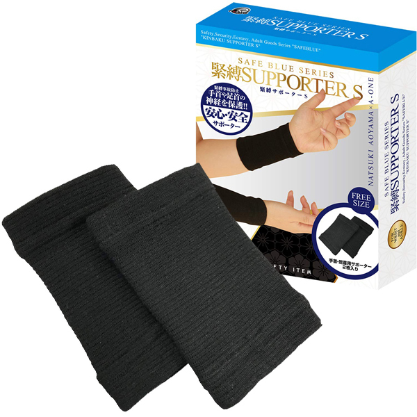 安心・安全で気持ちよくをコンセプトに、青山夏樹がグッズをプロデュース!『セーフブルー シリーズ』緊縛による神経圧迫事故防止のために考案されたサポーターです。伸縮性がある材質で手首や足首の神経を保護!!擦れたり傷つきやすい部位をしっかりサポート。パートナーとの信頼度もアップし、安全なプレイをお楽しみ頂けます。圧迫による麻痺が起こりやすい上腕部・脇下・肘関節・手首関節・指関節・膝関節・足関節などは、筋肉が薄く構造上弱いため、緊縛の際は注意が必要です。体と縄の間にサポーターを一枚着けるだけで圧迫事故などが防げます。そのような緊縛プレイに最適な厚み、材質の商品になっております。Sサイズ