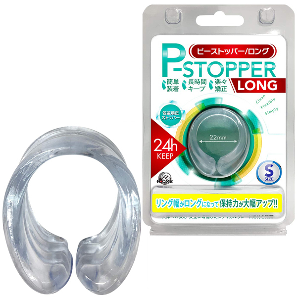 バレずにラクラク包茎矯正トレーニング!!皮を剥きリングを付けるだけの簡単装着!!Pストッパーシリーズにリング幅が長くなって保持力が大幅アップしたロングタイプが登場。リングの厚みが戻りを防ぐ4段構造と内側の高低差のある凹凸の爪が包皮をガッチリガードするので付けたまま寝ても外れない。もちろん人体への影響に考慮したメディカルグレード素材を採用し安心・安全に使用可能!!Sサイズは普通サイズの人にピッタリ!!