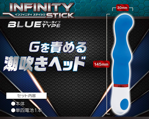最強の刺激へ。小さくたって超パワフルなミニバイブ『インフィニティスティック』選べる10種類の高刺激振動があなたを襲う!!上質なシリコン素材で、内部を傷つけることなくスムーズな挿入感。ヘッド部分はクネクネ曲げられるのでピンポイントに刺激可能。ボタン1つで誰でも簡単に操作可能。生活防水性なので、メンテナンスも楽々。Gスポットへダイレクトに直撃しGを責める潮吹きヘッド搭載!●上質なシリコン素材●スイッチ一つで楽々操作●生活防水機能