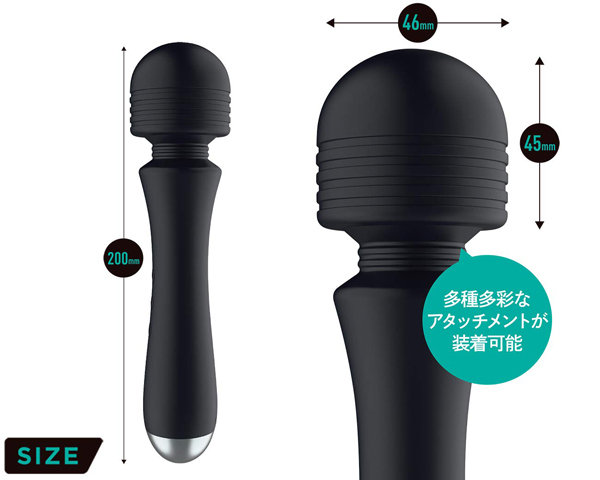 常識を覆す超強力モーター搭載で桁違いのパワーを実現!!スタイリッシュな見た目とは裏腹に強力な刺激が楽しめるデンマ「ゼッピン」が登場。スタイリッシュなのに強力刺激デンマ!強力振動でも手元がシビレない設計なので長時間の使用もOK。持ち手が熱を持たず安心安全に使用可能です。ボディはシリコンで覆われているので使い心地なめらか。ヘッド部分は一般的なデンマのヘッドと同サイズなので多種多彩なアタッチメントが使用可能。また、ファンクション5パターン×振動3パターンで計15パターンの刺激が楽しめる。完全防水で丸洗いもOK。USB充電式なのでパソコンなどからのチャージ可能。これがデンマのニュースタンダード!!ゼッピン振動に酔いしれよう。●充電時間:約2.5時間●連続使用時間:約2時間●シリコン素材●静音設計●完全防水●USB充電式(マグネットタイプ)
