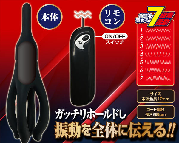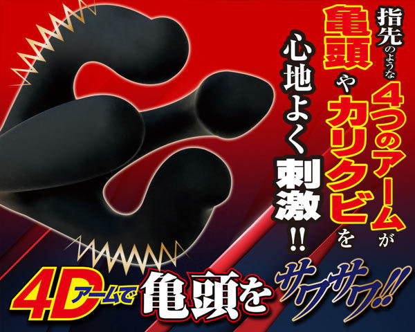 指先のような4つのアームで亀頭をサワサワと刺激する電池式ローター。先端やカリクビを優しく包み込み、撫でるように上下へサワサワ…ゾクゾクとした感触とこみ上げてくる快感がたまらない♪ローターをしっかり押し当てれば振動が亀頭を襲う!色々試して自分好みのポイントを見つけよう。7段階のパターン搭載、単4電池を2本使用
