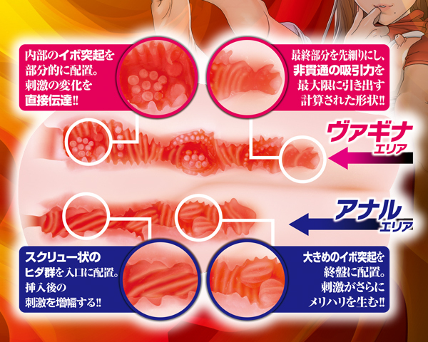 まんぐり返しでガンガン責めろ!即ハメせずにはいられない挿入特化の超リアル造形オナホ。ダイレクトなイボ突起刺激と非貫通ならではの吸引力を最大限引き出した膣穴&螺旋状ヒダと大イボ突起のメリハリ刺激が気持ちいい尻穴の二穴仕様♪ほんのり色付くアソコも艶めかしいくびれも芸術的!視覚的にも使用感も大満足間違い無しの重量1800g肉厚オナホ。ローション付