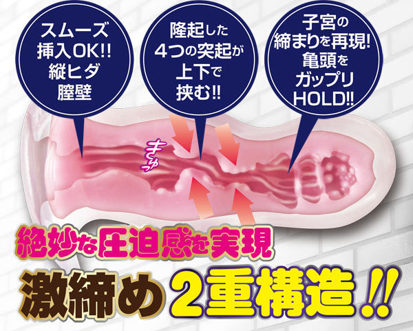 ぎゅっと挟んで絞り取る!引き締まった膣の圧力を再現できる、グリップしやすいハンディサイズの非貫通オナホ。滑らかな挿入感と上下から挟み込まれながら亀頭をホールドされるような、外は硬め中は柔らかな激締め2重構造で絶妙な圧迫感を実現!抗菌&消臭力に優れたスーパーハイジェニックパウダーを配合した繰り返し衛生的に使える日本製のオナホです。ローション付属