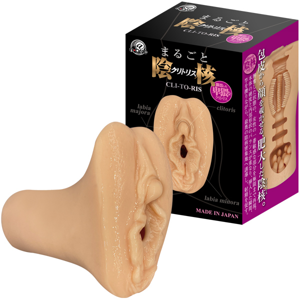 リアルで卑猥な「まるごと」シリーズに最新作!肥大した勃起陰核を完全再現した非貫通オナホ。全長11.5cm、重さ約180g、包皮から覗く敏感なアソコやビラまで丁寧に作り込んだそのビジュアルは圧巻!内部は細かなヒダがサオから裏スジまで擦り上げ、最深部の巨大イボの密集ゾーンで亀頭を刺激。興奮高まる見た目と快感を追求した極上内部で絶頂へと導く!日本製、ローション付き