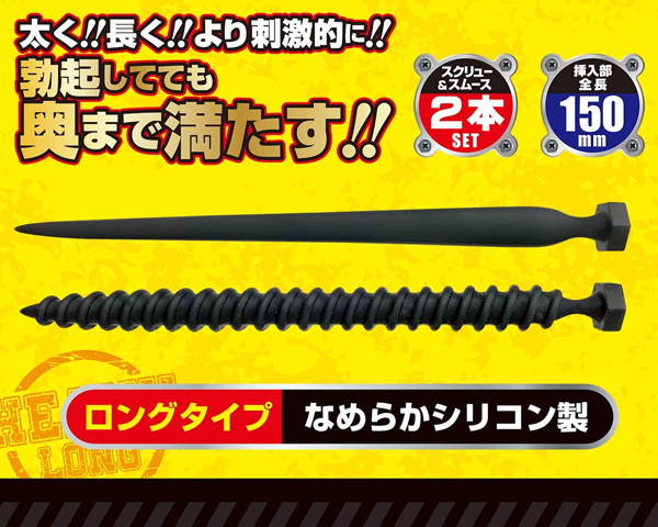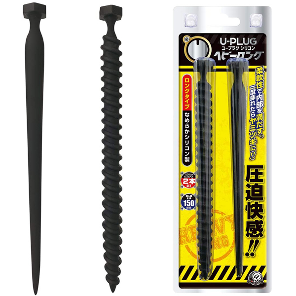 奥まで満たされる圧迫感がクセになる!全長15cmの滑らかなシリコン尿道プラグ2本。ストレートな挿入感を楽しめる釘型のビギナータイプと、螺旋状のスパイラルボディが尿道内に食い込むエキスパートタイプの2種セット!自分の身体に合った形状で楽しめます♪奥へ進むほど太くなるので、慣らしながら少しずつ挿入してください。