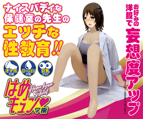 はめキュン学園に巨乳でえっちな保健室の先生アヤカが赴任!M字開脚になって生徒たちを誘惑する♪全長は140cmの等身大サイズ、ポケットは直径12cm、奥行き18cmに設計。別売り「レイカ(e26130)」「ヒマリ(e26128)」を用意してハーレムプレイをしたり、着せ替え衣装やタマトイズの匂いスプレーなどをプラスして楽しんでも♪オナホ&ローション付属