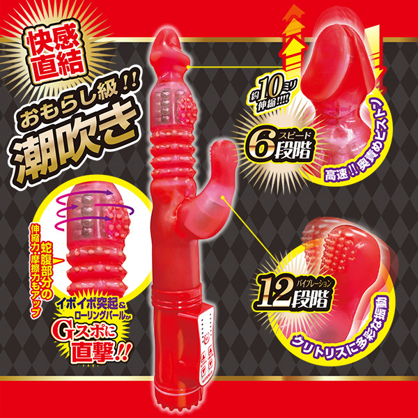 今日は奥でイッてみたい、そんなときに役立つのがこちらの「シオフキングP」です。挿入部分は12.5cm(伸縮時)と奥まで届きやすく、ジャバラが伸縮して奥をガン突きするから奥イキしたい方へおすすめのバイブです♪ヘッドは挿入しやすい亀頭型で反転機能を備えたパール回転が心地よくうねり、12段階の種類を備えた子バイブの振動が奥イキだけじゃなくクリも同時にしっかりと刺激してくれます。Gスポットにはイボイボ突起&ローリングパールの高速摩擦が快感を与え、ポルチオには6段階スピードの奥責め高速ピストンが膣奥を責めつつ同時にクリイキまでも味わわせてくれます♪快感直結で動作も多彩。生活防水だからたくさん潮を吹いても大丈夫!シオフキングと2本使いで潮吹き大会を楽しむのもいいですね♪