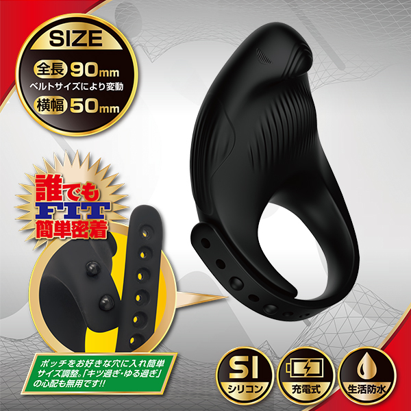 密着感と調整可能な締め付けが特徴の男性用コックリングです♪調整ベルトによりフィット感を自由に設定でき、安心してプレイに集中できます!シリコン素材で滑らかな着け心地があり、振動は7段階からお好みの強さを選べます♪充電式なので繰り返し使用でき、生活防水仕様でお手入れも簡単!多様な装着方法で、さまざまなシーンに対応します♪付属品にはUSB充電ケーブルが付いており、使いやすさも抜群です!