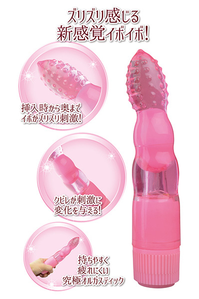 誰でも中イキが出来る!?出し入れが気持ち良い一本型のバイブです。先端がイボイボしたデザインで、抜き差しする度に内壁をズリズリと擦り上げる!途中のクビレは刺激に変化を与え、何度抜き差ししても飽きのこない気持ちよさを味わえます♪また、内部にはハイパワーローターを搭載!振動による刺激を感じることも。底部にある無段階調整ダイヤルをクルリと回せば、お好きな強さでお楽しみいただけます♪ぷるんとした柔らか素材だから、硬いものが苦手という方にオススメです。