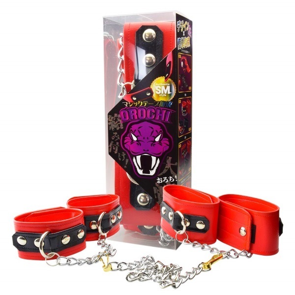 肌触り・質感、触れば分かる素材に拘った日本製本格SM拘束具シリーズOROCHI。質感が違うからよりリアリティのあるSMプレイが楽しめる♪雰囲気を盛り上げる高級感のある設えが感情を刺激する!両手両足の自由を抑制された上に、さらにジョイント拘束チェーンで自在に変態プレイが楽しめる! お手軽なマジックテープ拘束。カラー:レッド