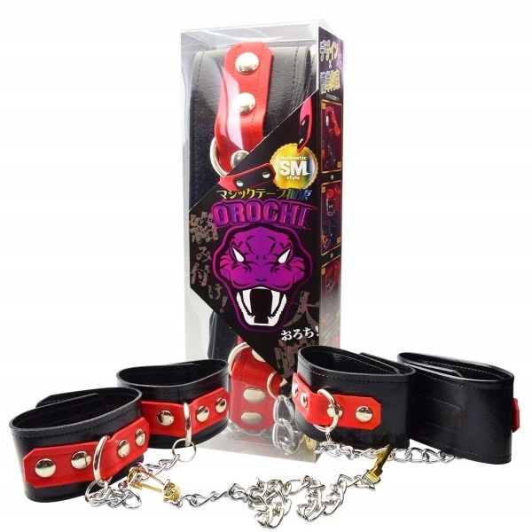 肌触り・質感、触れば分かる素材に拘った日本製本格SM拘束具シリーズOROCHI。質感が違うからよりリアリティのあるSMプレイが楽しめる♪雰囲気を盛り上げる高級感のある設えが感情を刺激する!両手両足の自由を抑制された上に、さらにジョイント拘束チェーンで自在に変態プレイが楽しめる! お手軽なマジックテープ拘束。カラー:ブラック