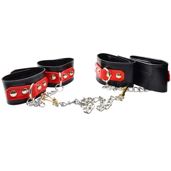 パッケージ:22.0×7.0×6.0cm 本体:手枷(ベルト27.0×5.0cm・チェーン17.0cm)・足枷(ベルト29.5×6.0cm・チェーン20.0cm)・ジョイントチェーン48.0cm