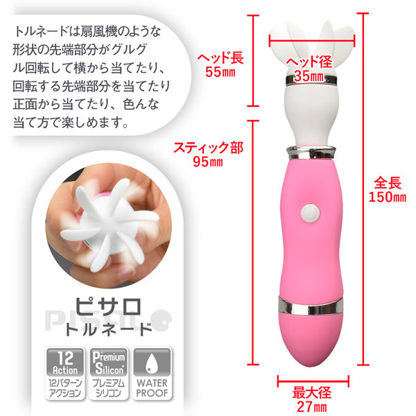 新感覚の快感を体験!12種類のアクション搭載、プロペラ形状のサプライズアクショントイ(電池式)。先端の羽がクルクルとトルネード回転!敏感な部分を横&正面から叩いて刺激する♪本体には柔らかなプレミアムシリコン素材で触り心地よく振動を軽減!長時間のプレイでも疲れにくい設計となっています。生活防水仕様、単4電池×2本使用