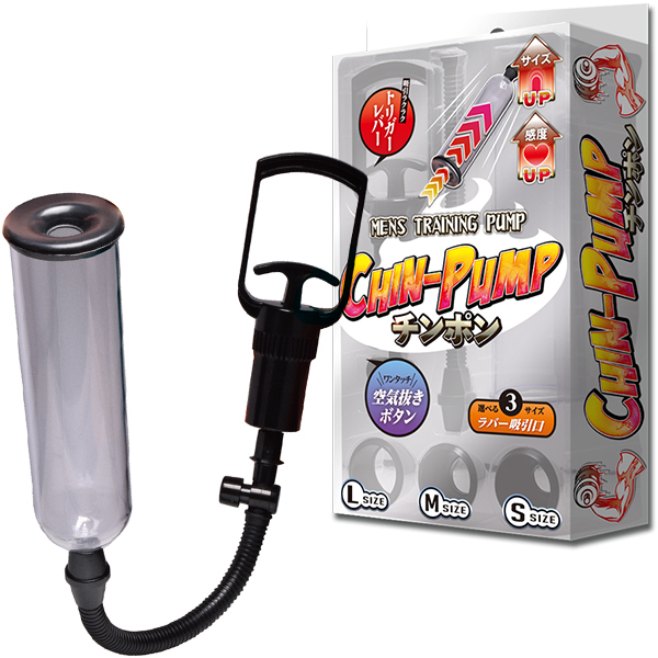 吸引時のトリガーがレバータイプで吸引しやすいペニス増大ポンプ「CHIN−PUMP(チンポン)」。空気抜きもワンタッチで簡単♪エアリリースボタン付きなので基本的な性能は抑えていて、ラバー吸引口がS、M、Lの3サイズ付属されているのも嬉しいポイント◎。扱いやすいホース長とワンタッチ空気抜きボタンを採用!大きく成長するにしたがって自由にラバーキャップを選べるので安心です♪初めてのメンズトレーニングギア選びにもぜひどうぞ。