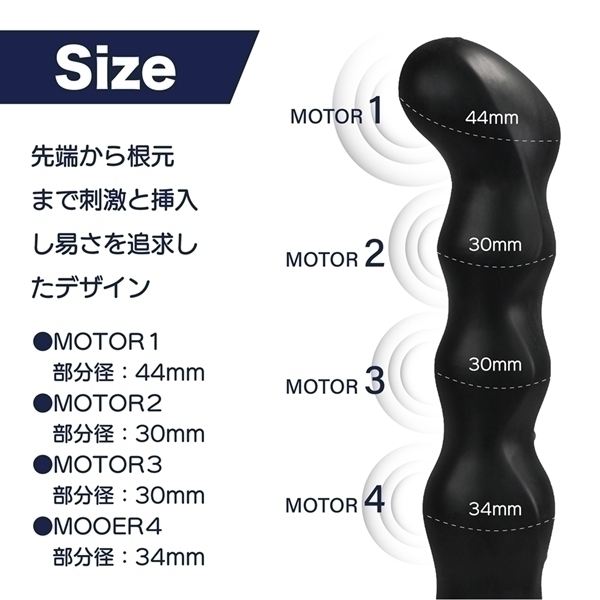 4つのモーターを搭載した高機能モデルです♪先端から根元までそれぞれ独立して操作できる設計で、お好みに合わせたカスタマイズが楽しめます!3段階の振動強弱と5種類のパターン振動を組み合わせて、自由自在に設定可能です♪先端だけハイパワーにして、根元はリズミカルな動きにするなど、多彩なバリエーションを体感できます!さらに特別なCLIMAXボタンを搭載し、全モーターを一斉に振動させたり、順番に波打つような動きを選べます♪表面素材には、リアルなやわらかさと滑らかな肌ざわりを再現した特殊TPE素材を採用!約60分の充電で、最大90分の長時間使用も可能です♪