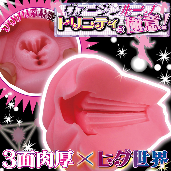 「ヴァージンループ」×「萌えあなトリニティ」のサラブレッド!圧倒的肉厚600gで味わうヒダ構造の非貫通オナホ。中でぎゅうぎゅうと密集する3面繊細ヒダでゾリゾリ刺激!高弾力高伸縮素材バンジータッチ仕様、全長16cm(内部長13cm)サイズの日本製オナホ。ねっとりローション