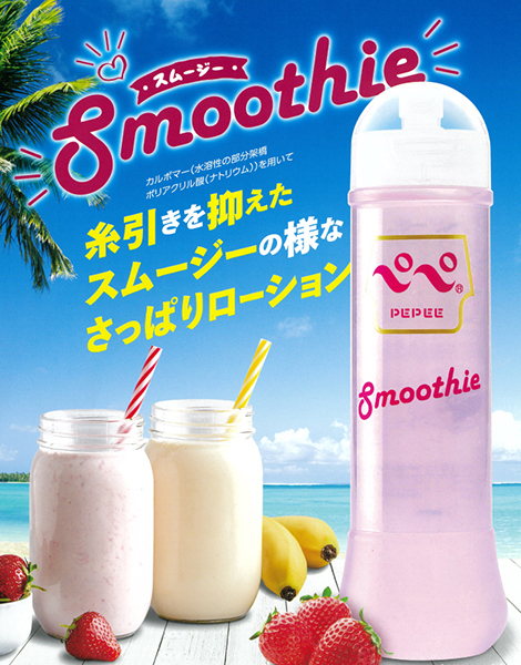 ローション特有の糸引きが苦手な方にとっての救世主!「ペペ 360 スムージー」。カルボマー(水溶性の部分架橋ポリアクリル酸ナトリウム)を用いているため、まるでスムージーのようなさっぱりとした使い心地を実現♪糸引きを抑えた「スムージー」の様なさっぱりした使用感で、滑りだけが欲しいというときに活躍してくれます。繊細な構造のオナホにもどうぞ♪【成分】水・グリセリン・カルボマー・カルボマーNa・PEG−20M・ETDA−2Na・フェノキシエタノール・メチルパラベン・着色料。