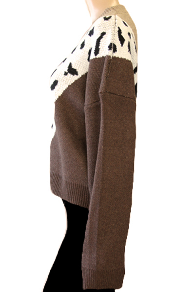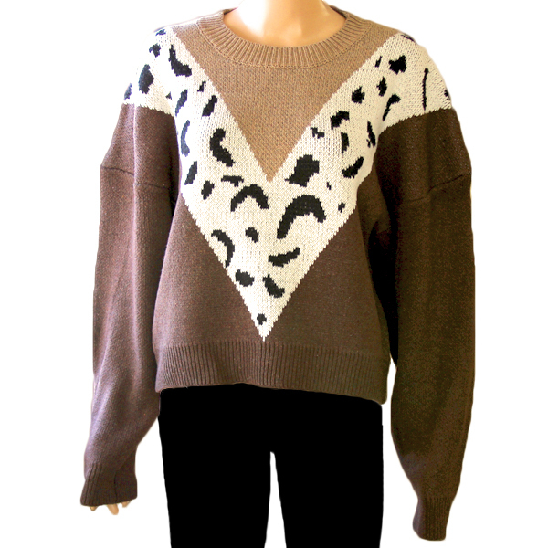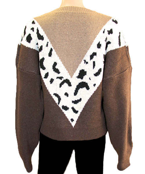 > V字ラインのヒョウ柄ニットセーター Mサイズ ブラウン