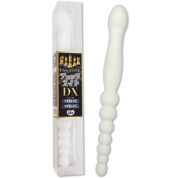 アナルビーズとアナルディルドの2つの挿入感がこれ一本で味わえる「チェックメイトDX」です♪ダブルの刺激でお得!リバーシブルタイプでシリコン素材なので挿れ心地も良好で男女問わず気持ちよくなれるディルドです♪素材は柔軟性がありしなやかに曲がるので使い勝っても抜群!ビーズ側は徐々に太くなるボールが7連続していてストローク長が11cmもあり、反対側は先端部分の膨らみが快感スポットを圧迫しやすく挿入長も12cmと挿入しやすくどちらの穴でも気持ちよくなれます♪