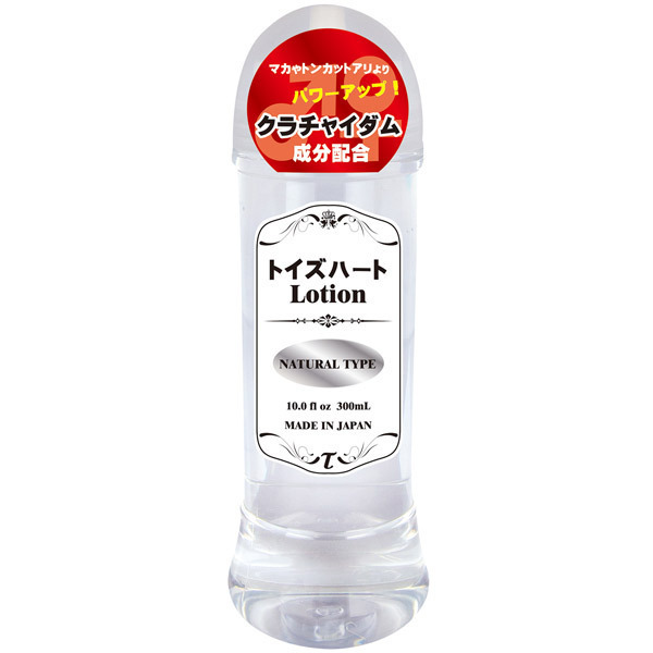 マカ、トンカットアリを超えた!話題のパワーアップ成分クラチャイダムを配合したローション。●トイズハートの日本製ローション●自然な潤いをもたらすナチュラルタイプ●たっぷり使える300mlボトル入り。アルギニンやアスパラギン酸の成分量がマカの倍以上含まれているクラチャイダム(黒しょうが)を配合したローション!汎用性の高い中粘度タイプで使い勝手もバツグンです。