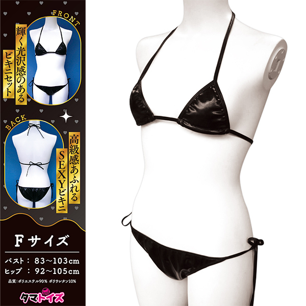 クールに輝くブラック光沢ビキニが新登場♪男女兼用だから誰でもオシャレに着こなせる!ポリエステル90%、ポリウレタン10%で着心地も快適♪ほどよい伸縮性があるから、動きやすさも抜群!ブラックの光沢感がスタイリッシュな印象を演出♪Fサイズで幅広い体型に対応しています!ビーチやイベントなど、さまざまなシーンで活躍間違いなし♪ブラック光沢ビキニで注目を集めちゃいましょう!●TMT-1794