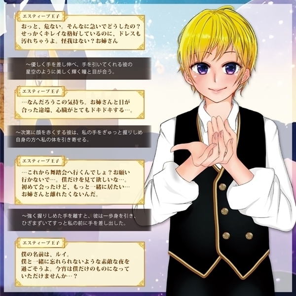 これは貴方だけの物語…。不思議な魔法使いに導かれ、お城の舞踏会へ参加することとなった貴女は運命の王子様に出会います…。選ぶのは貴女自身。さあ、運命の王子様はだれ…?◆ルイ・エスティーブ第3王子◆幼さが残りながらも男の子らしさも備え持つ優しい癒し系男子。細身でスラッとした出で立ちは、初めての方にも優しくフィット。美しく伸びた胴部分が中を優しく撫で回し、先端の突起が気持ちい部分を刺激する…。